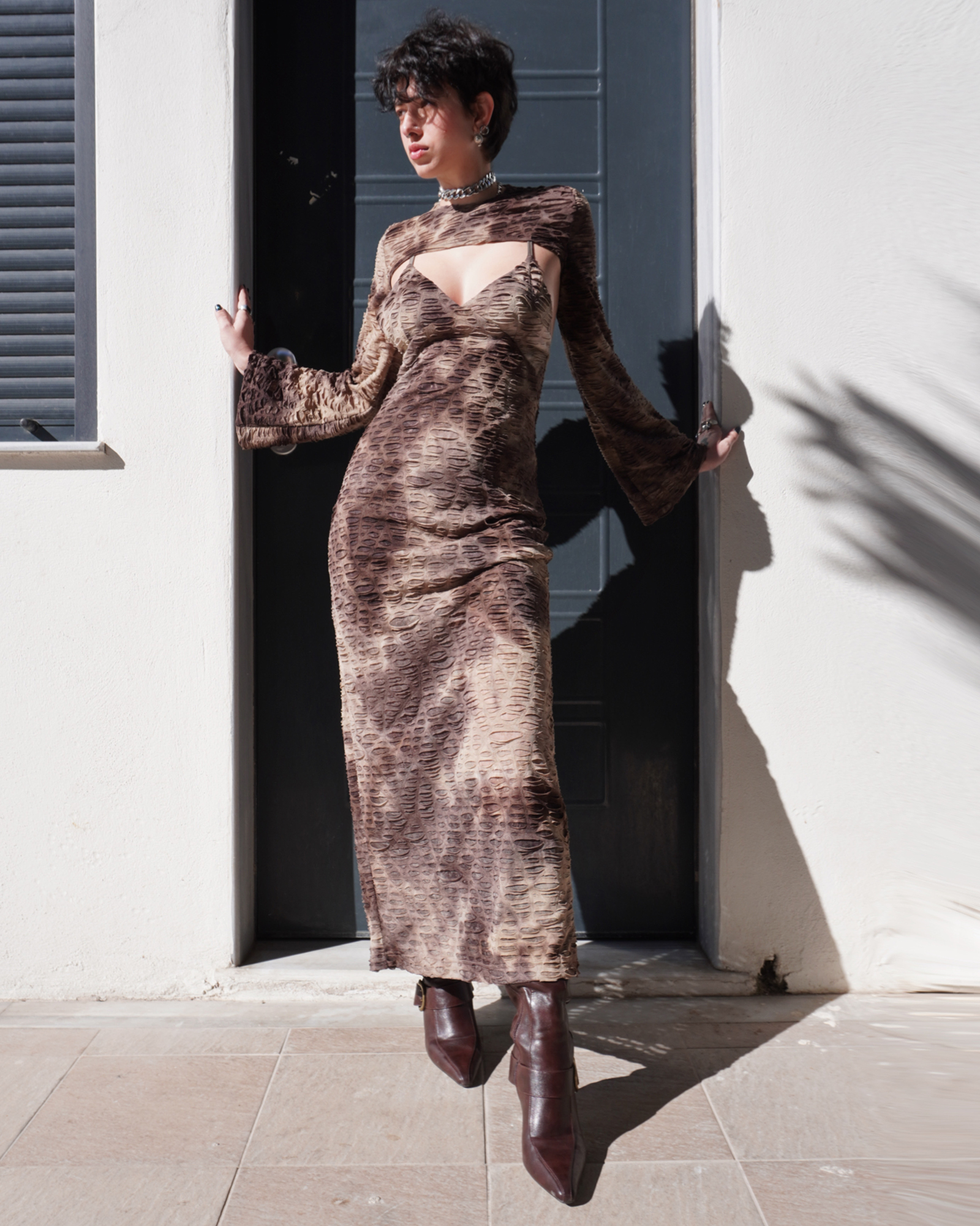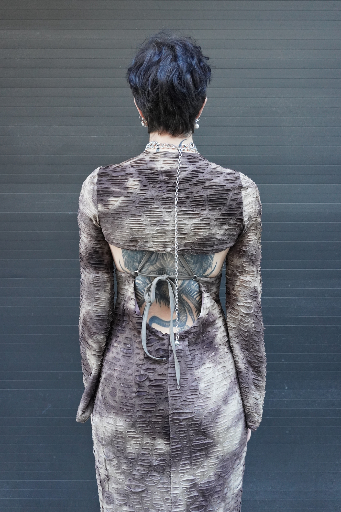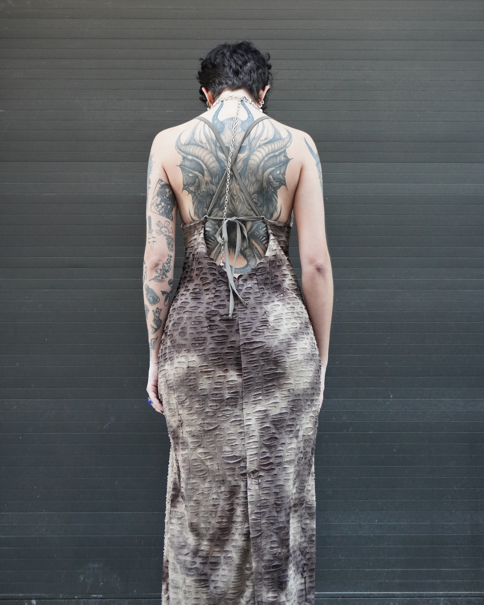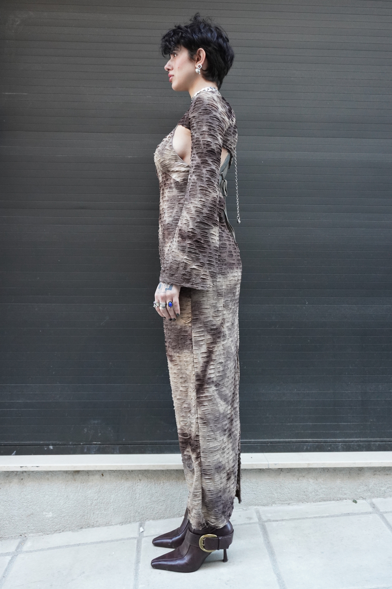 * Washing instructions : All our clothes are handcrafted, so wash at a low temperature, typically on 30 degrees.Open back long dress with long-sleeve top.