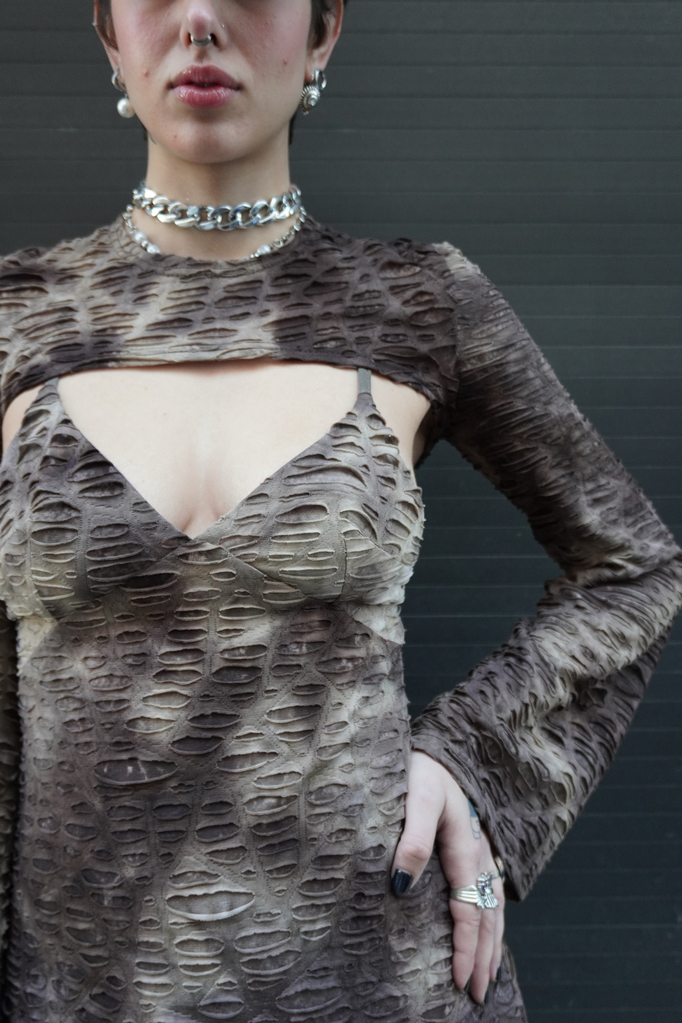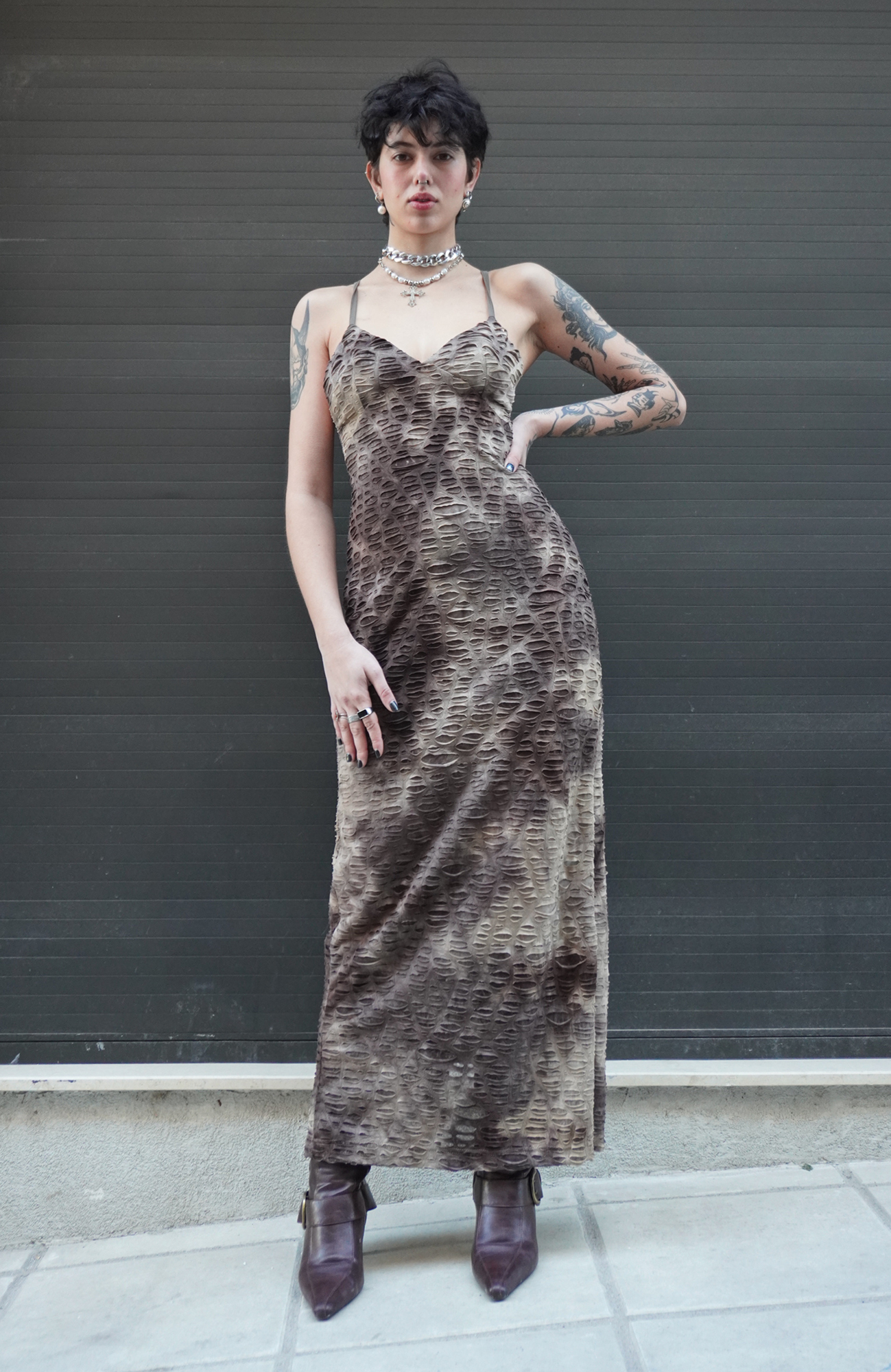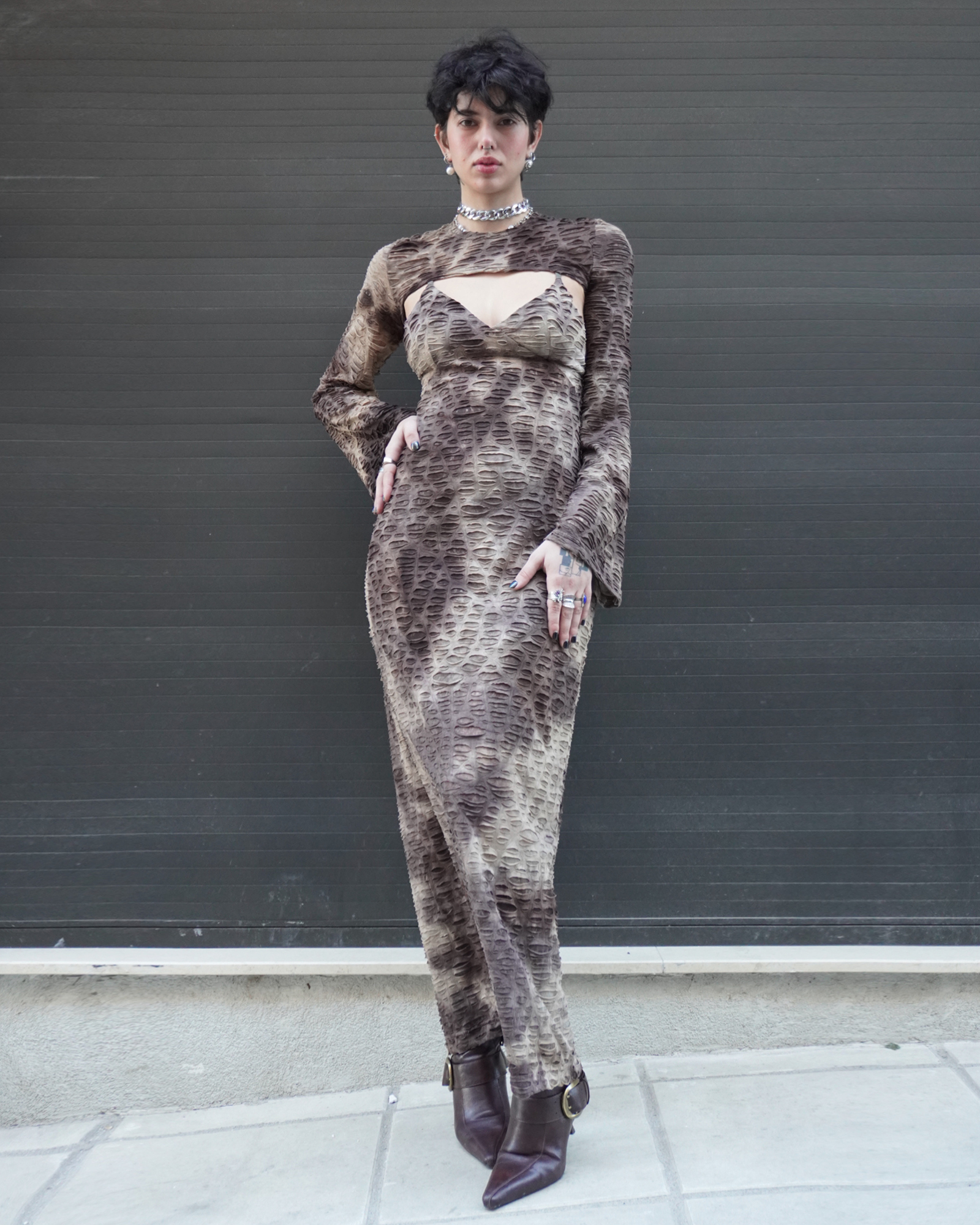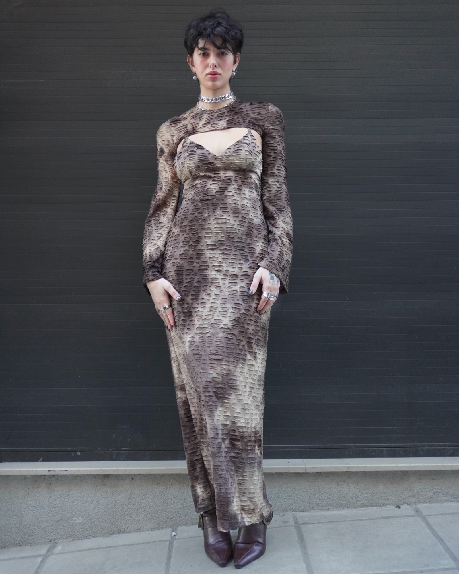* Washing instructions : All our clothes are handcrafted, so wash at a low temperature, typically on 30 degrees.Open back long dress with long-sleeve top.