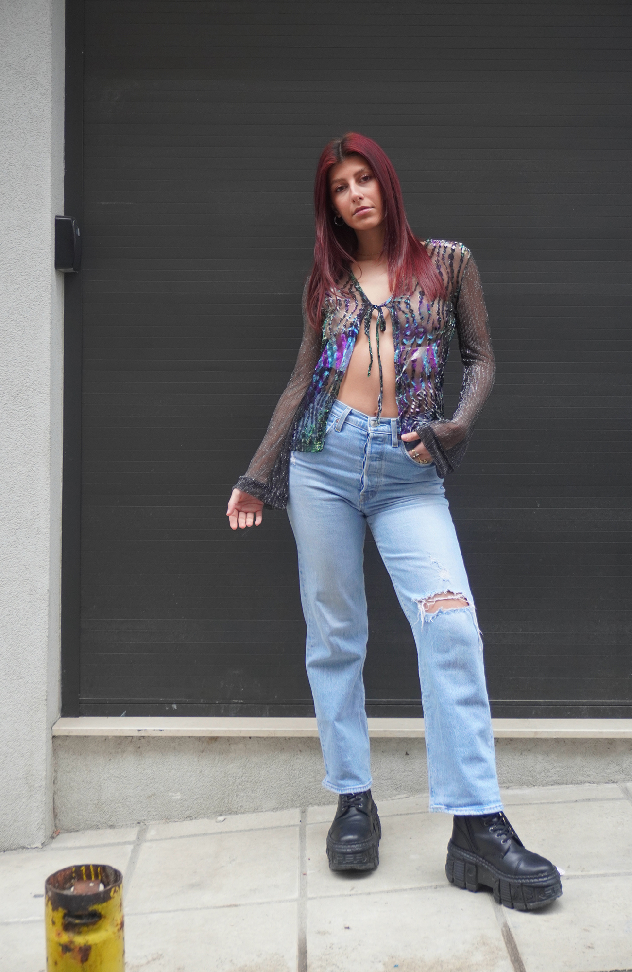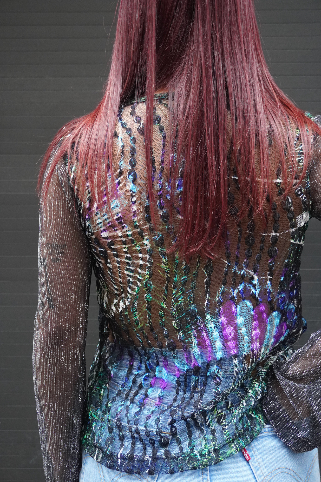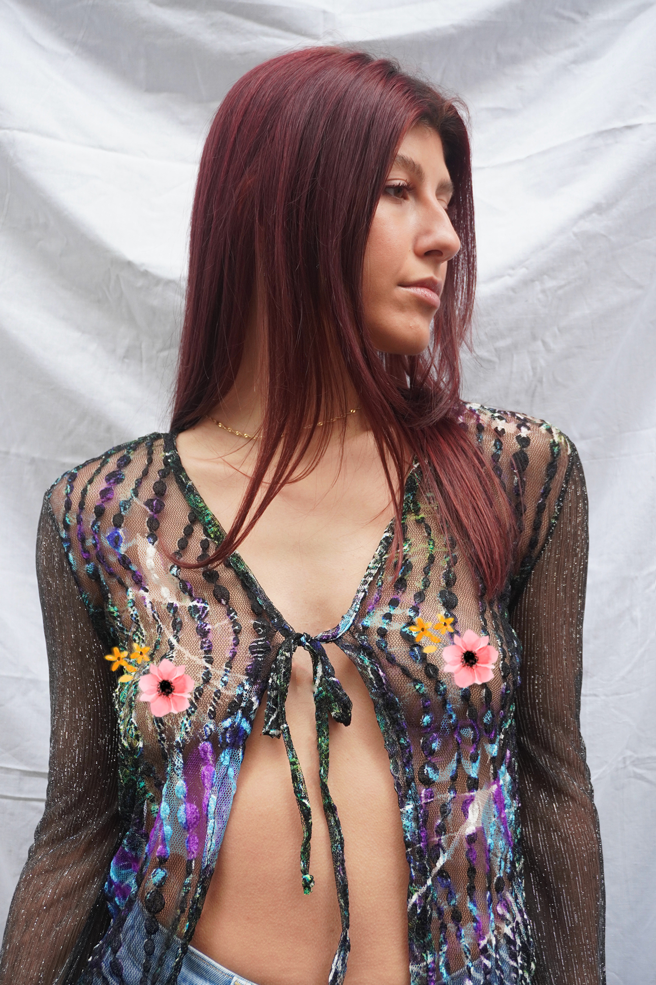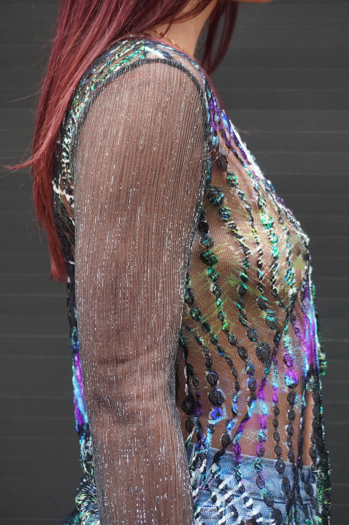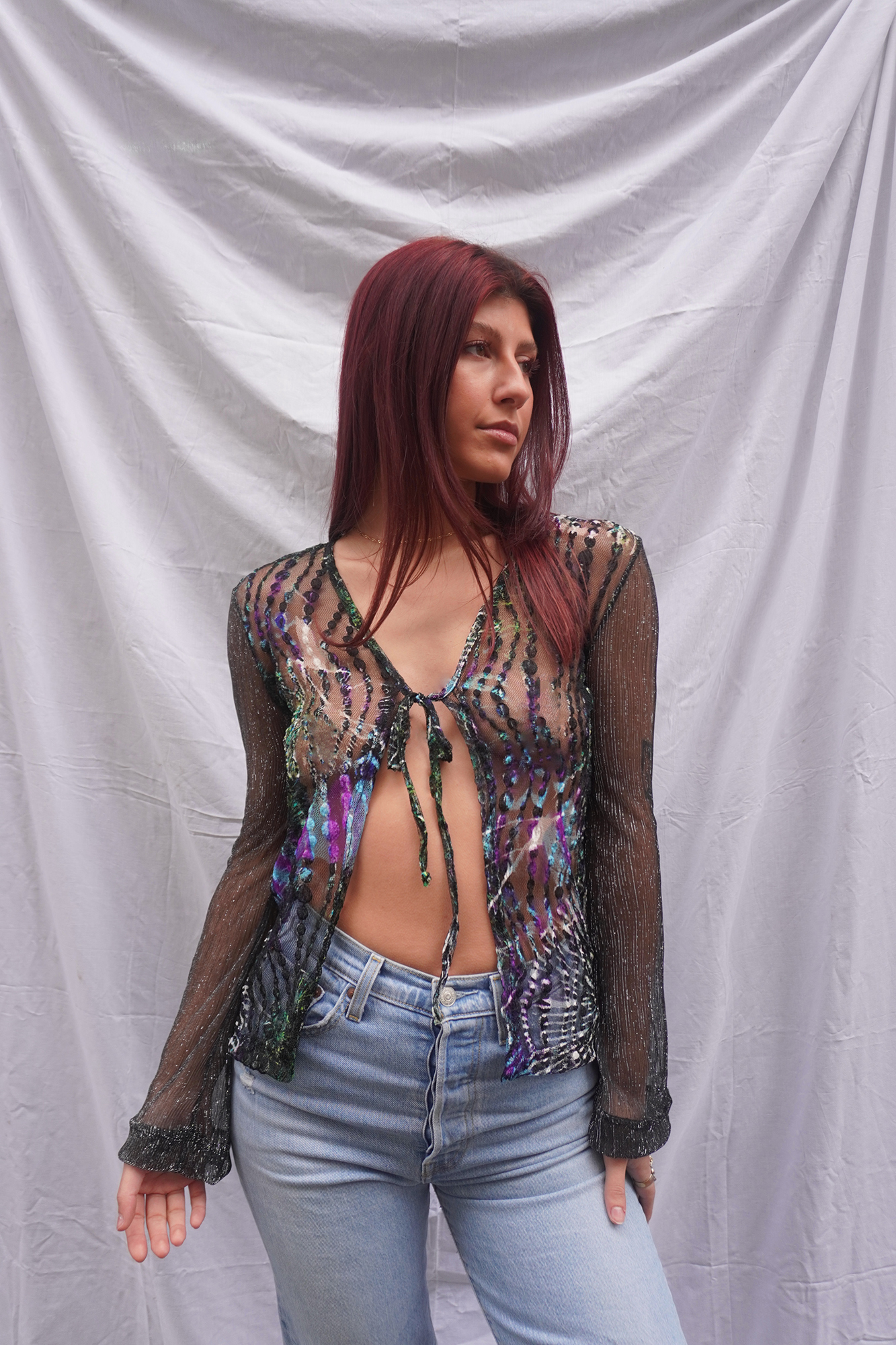 Elastic see-through mesh cardigan/top